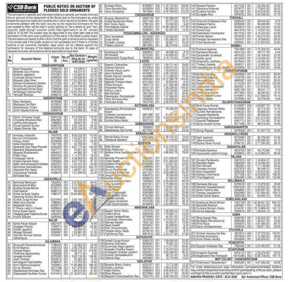 CSB Bank Gold Auctions Auction in Visakhapatnam