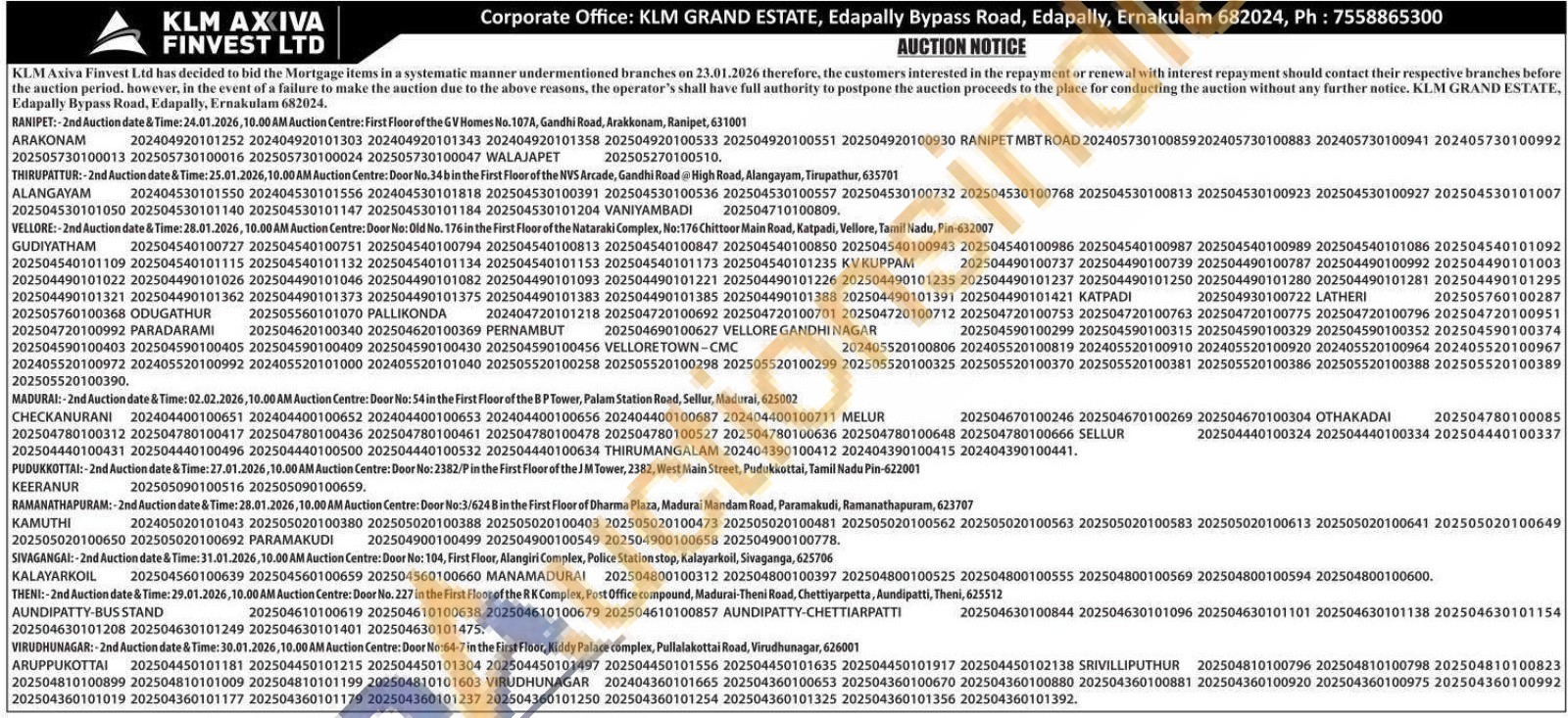 KLM Axiva Finvest Ltd Gold Auctions Auction in Ernakulam
