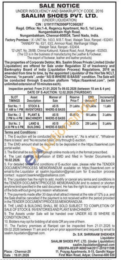 Liquidation E-Auction Land And Building Auction in chennai, Chennai