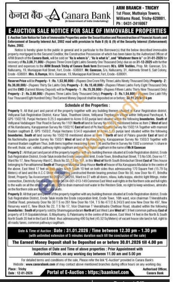Property 2: All that part and parcel of the property together with any building thereon situated at Erode Registration district, Erode Sub Registration District, Erode Taluk inside the Erode corporation limit, Erode Town, Brindhachari Street, TS No 536, Door no 17, Ward No 17, New Resurvey Ward C, Block No 32, T.S No 101, in this West of North South Brindachari Street East of Tiles house belonging to Parvathiammal South of Thangavel Mudaliar Shop House North of house of Na. Karuppana Mudaliar In the centre of the above, East West 17 feet on both sides North South 10 feet on both sides thus admeasuring 170 Square Feet (15.79 Sq Meters) of land and the A.C.C Sheet roof building constructed therein bearing previous Door No 50, now Door No 41, Brindha Street, Property Tax Assessment No 056/027/00255, Ward no 27 with all doors, nilavu, kattu koppu, electric light fittings, meter connection, Electricity Service Connection No 04-001-013-149 Common East West wall rights in the Northern side and full rights to the walls on all the other three sides, right to drain mamool roof water in the Western Side, no right to keep windows, almirahs on the Northern side and western side walls