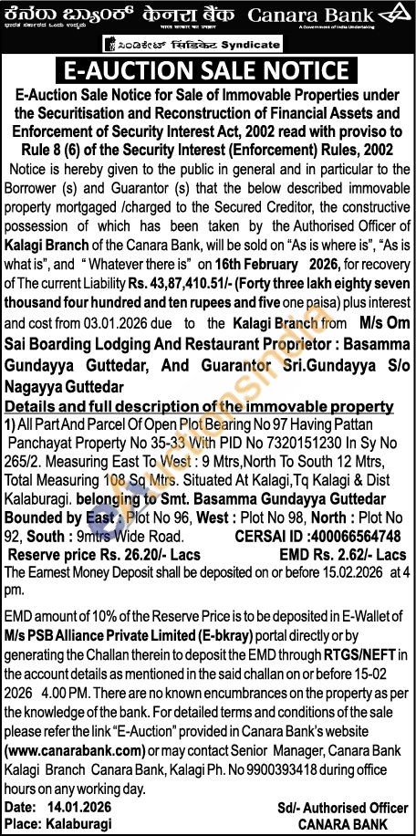 All Part And Parcel Of Open Plot Bearing No 97 Having Pattan Panchayat Property No 35-33 With PID No 7320151230 In Sy No 265/2. Measuring East To West: 9 Mtrs, North To South 12 Mtrs, Total Measuring 108 Sq Mtrs. Situated At Kalagi, Tq Kalagi & Dist Kalaburagi. belonging to Smt. Basamma Gundayya Guttedar