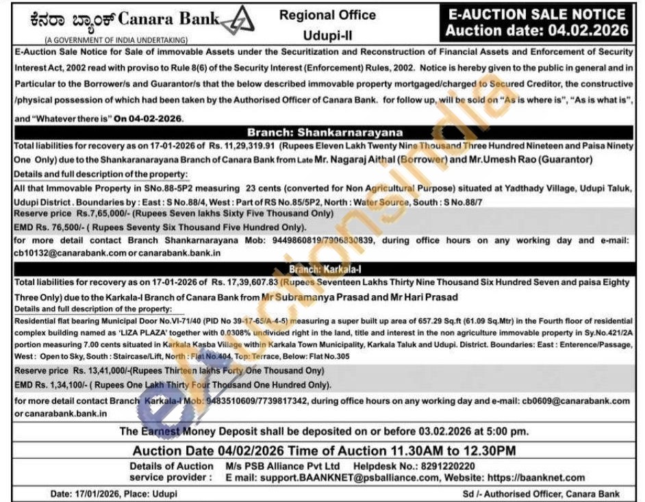 All that Immovable Property in SNo.88-5P2 measuring 23 cents (converted for Non Agricultural Purpose) situated at Yadthady Village, Udupi Taluk, Udupi District. Boundaries by: East: S No.88/4, West: Part of RS No.85/5P2, North: Water Source, South: S No.88/7