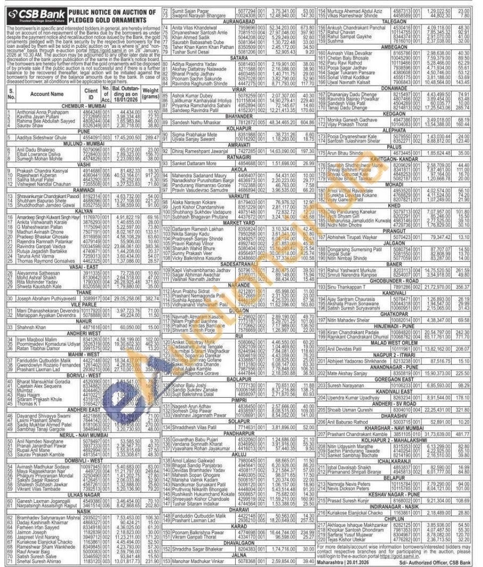 CSB Bank Gold Auctions Auction in Mumbai