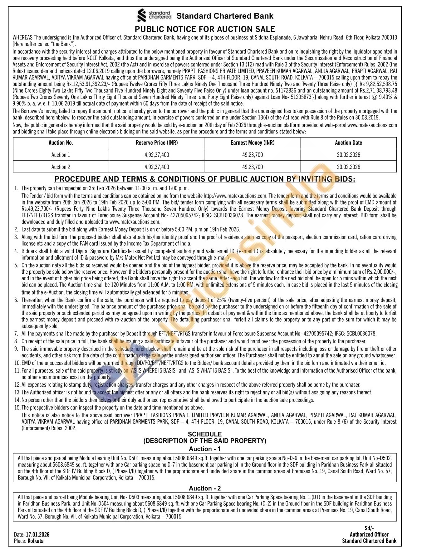 All that piece and parcel being Module bearing Unit No-D503 measuring about 5608.6849 sq. ft. together with one Car Parking Space bearing No. 1.(D1) in the basement in the SDF building in Paridhan Business Park. and Unit No-D504 measuring about 5608.6849 sq. ft. with one Car Parking Space bearing No. (D-2) in the Ground floor in the SDF building in Paridhan Business Park all situated on the 4th floor of the SDF IV Building Block D, (Phase I/II) together with the proportionate and undivided share in the common areas at Premises No. 19, Canal South Road, Ward No. 57, Borough No. VII. of Kolkata Municipal Corporation, Kolkata-700015.