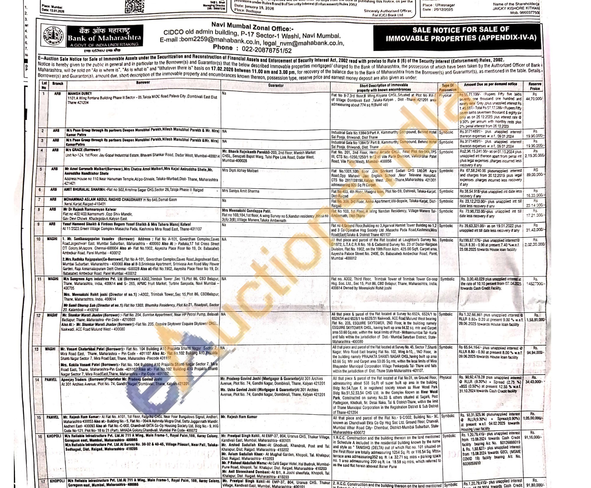 Equitable Mortgage of Flat no 401, 4th Floor, Building no 11, Simran Majestic CHSL, Survey NO 112, Hissa No 4. Village Taloje Majkur, Taluka Panvel, District Raigad 410 208.