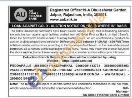 AU Small Finance Bank Gold Auctions Auction in Warangal