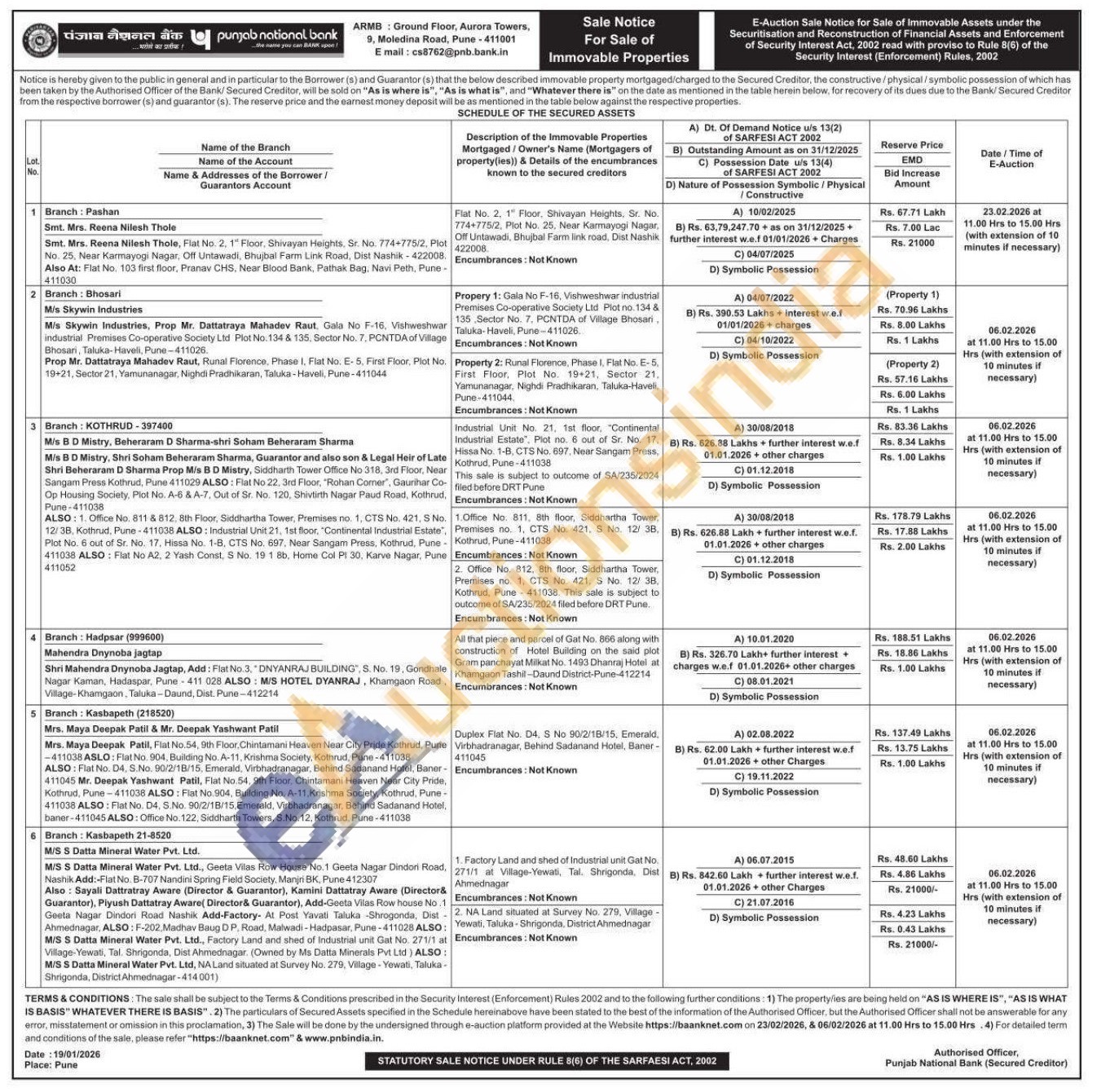 Contact No : E mail: cs8762@pnb.bank.in