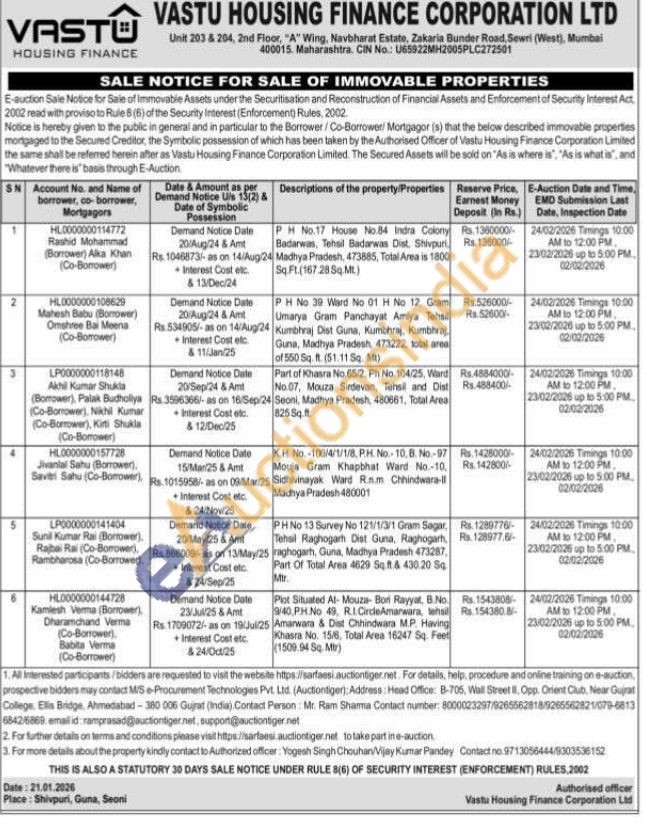 Authorized officer: Yogesh Singh Chouhan / Vijay Kumar Pandey Contact no : 9713056444 / 9303536152