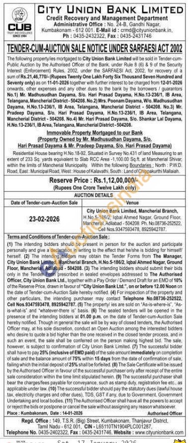Residential House bearing H.No. 18-92, Situated in Survey No.431 of land Measuring to an extent of 233 Sq yards equivalent to Slab RCC Area -1,100.00 Sq.ft. at Manchenal Shivar within the limits of Mancherial Municipality Within the following Boundaries: North: PWD. Road, East: Municipal Road, West: House of Kalavathi, South Land of Chippakurthi Mallaiah