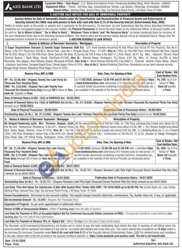 All that Piece And Parcel Of The Property, Flat No.A-503, On The Fifth Floor, Shree Ganesh Hill View, Carpet Area About 38.27 Sq. Mtrs., Adjacent Terrace Area About 4.64 Sq. Mtrs. At Survey No.429 & New S.No.380/1/1, Charholi Budruk (Tajne Mala). Haveli, Dist. Pune. Boundaries as per land revenue records.