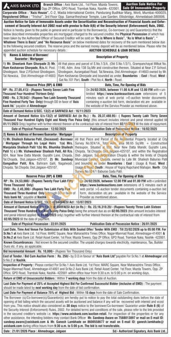 All that Piece and Parcel of the Residential Property located at City Survey No.924/1A, Total Adm. area 98.65 Sq.Mtr. + Construction thereupon, Situated at 924, Near New Datta Mandir, Gujrathi Lane. Chopda, Tal.Chopda, Dist Jalgaon-425107, and within the Registration Dist- Jalgaon, Sub-Registration Chopda & within the limits of Chopda Municipal Council, Chopda, owned by Late Mr. Shailesh Baburao Pati and bounded as under Boundaries: East: Usage & Road. West: Usage & Road, South: House of Yograj Rupchand Mahajan, North City Survey No.924/1 Baburao Sadu Patil