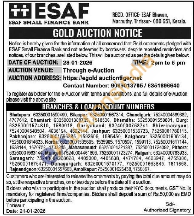 ESAF SMALL FINANCE BANK Gold Auctions Auction in Bhatapara