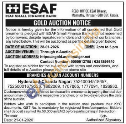 ESAF SMALL FINANCE BANK Gold Auctions Auction in Hyderabad