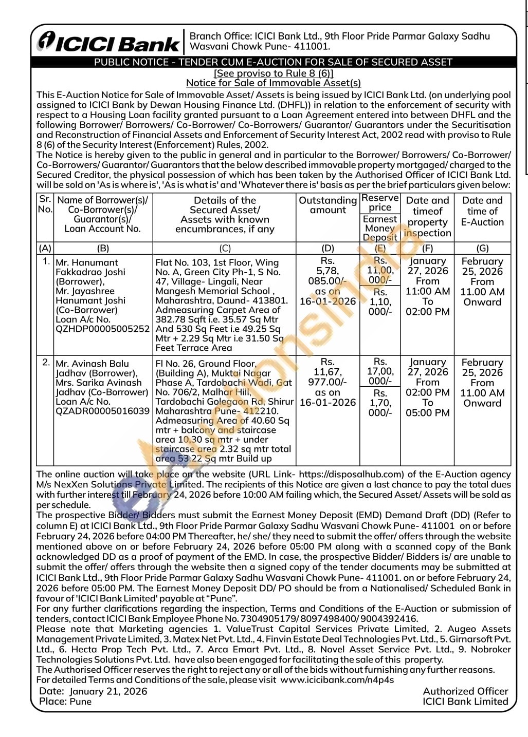 Fl No. 26, Ground Floor, (Building A), Muktai Nagar Phase A, Tardobachi Wadi, Gat No. 706/2, Malhar Hill, Tardobachi Golegaon Rd, Shirur Maharashtra Pune-412210. Admeasuring Area of 40.60 Sq mtr + balcony and staircase area 10,30 sq mtr + under staircase area 2.32 sq mtr total area 53.22 Sq mtr Build up