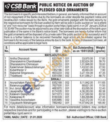 CSB Bank Gold Auctions Auction in Mayiladuthurai