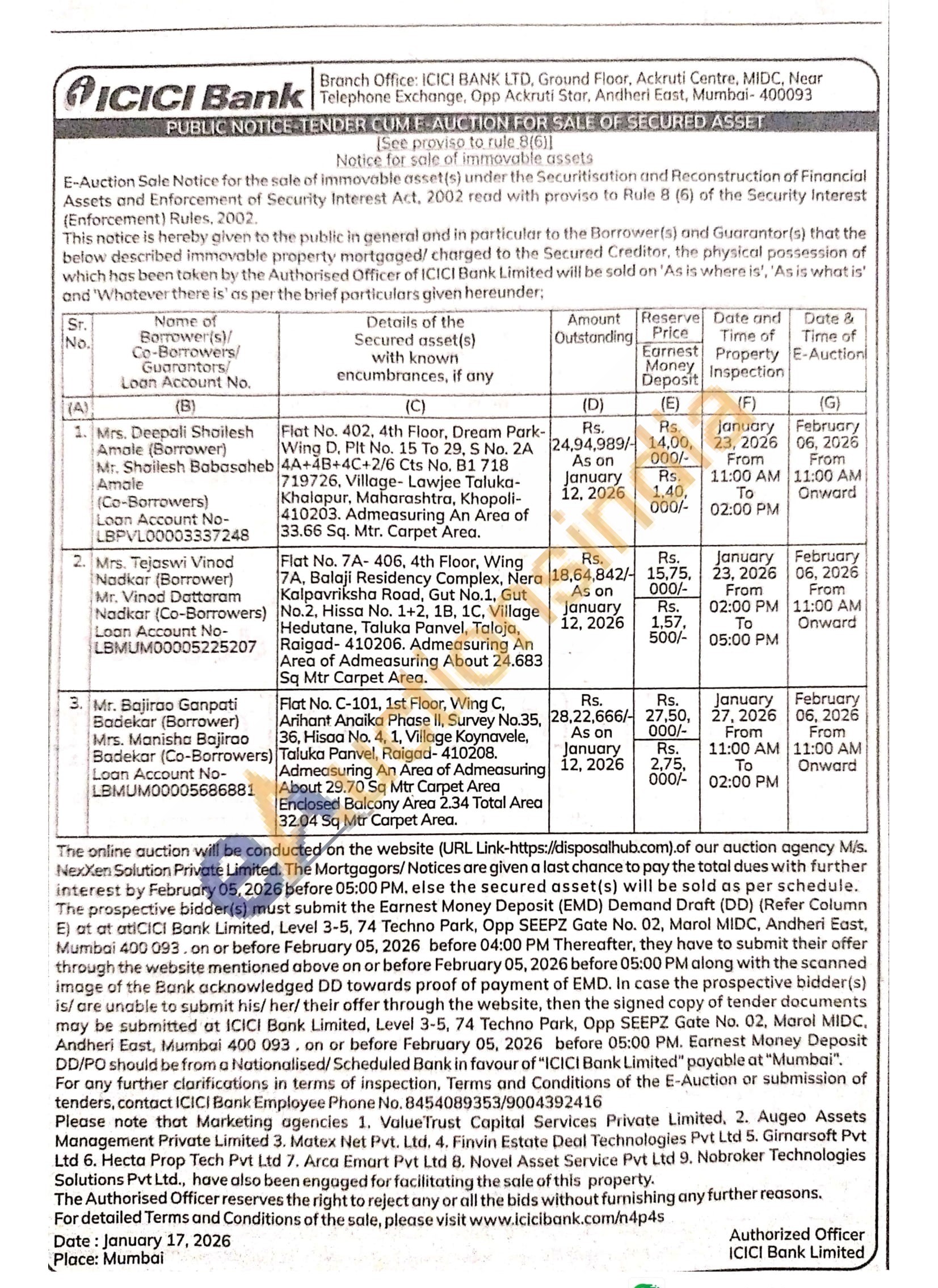Flat No. 402, 4th Floor, Dream Park-Wing D. Plt No. 15 Το 29, S No. 2A 4A+4B+4C+2/6 Cts No. B1 718 719726, Village- Lawjee Taluka-Khalapur, Maharashtra, Khopoli-410203. Admeasuring An Area of 33.66 Sq. Mtr. Carpet Area.