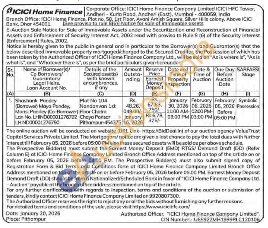 Plot No 104 Nandanvan 1st Floor Chatra Chaya Parisar Pithampur-454375