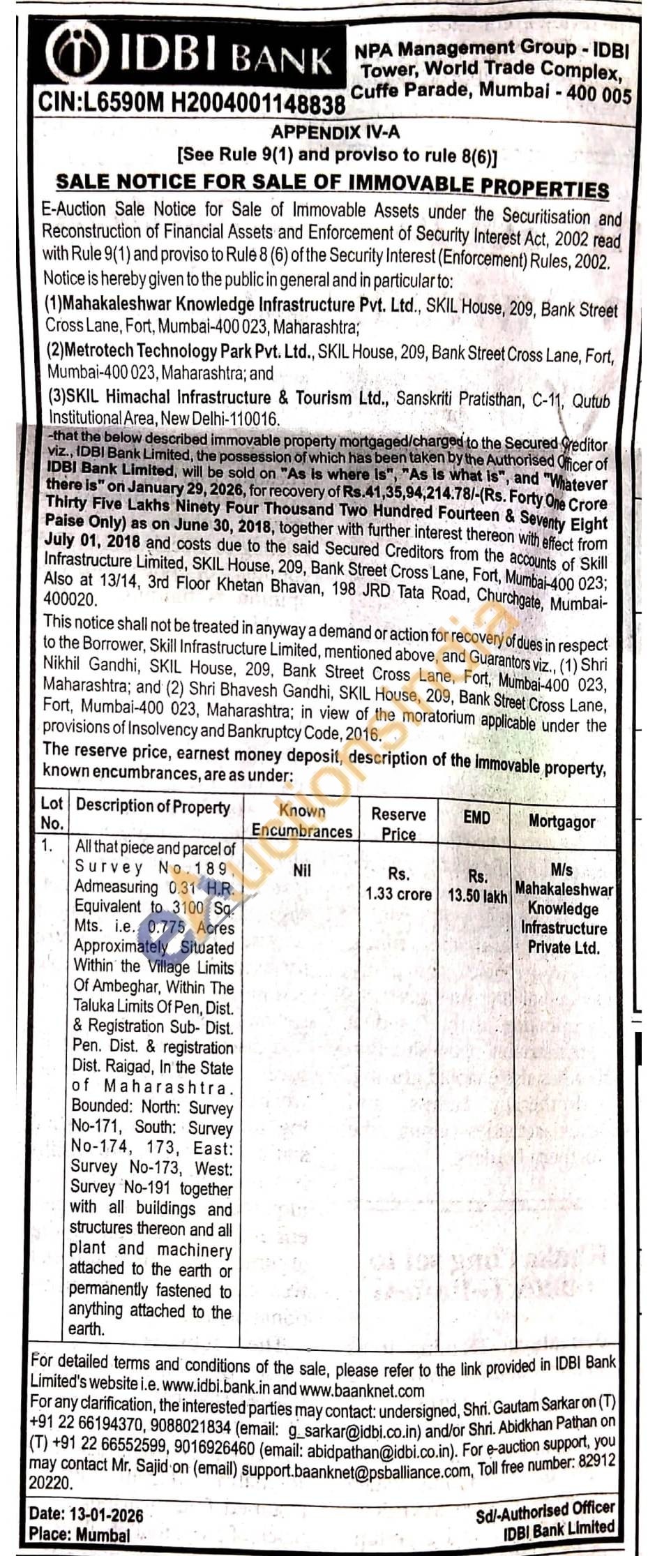 Shri Gautam Sarkar : +91 22 66194370, 9088021834 (email: g. sarkar@idbi.co.in) and/or Shri. Abidkhan Pathan on (T) +91 22 66552599, 9016926460