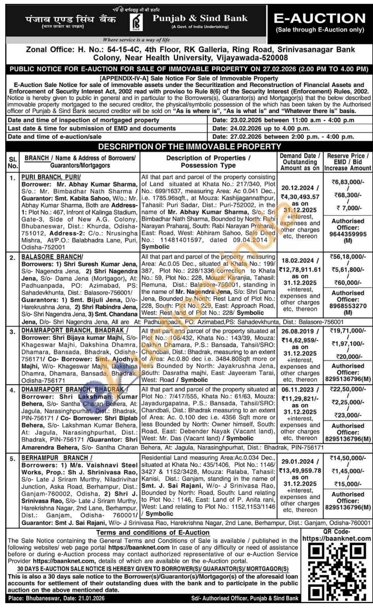 All that part and parcel of the property consisting of Land situated at Khata No.: 217/340, Plot No.: 699/1637, measuring Area: Ac 0.041 Dec., i.e. 1785.96sqft., at Mouza: Kashijagannathpur, Tahasil: Puri Sadar, Dist.: Puri-752002, in the name of Mr. Abhay Kumar Sharma, Sio.: Sri Bimbadhar Nath Sharma, Bounded by North: Rabi Narayan Praharaj, South: Rabi Narayan Praharaj, East: Road, West: Abhiram Sahoo, Sale Deed No.: 11481401597, dated 09.04.2014 /Symbolic