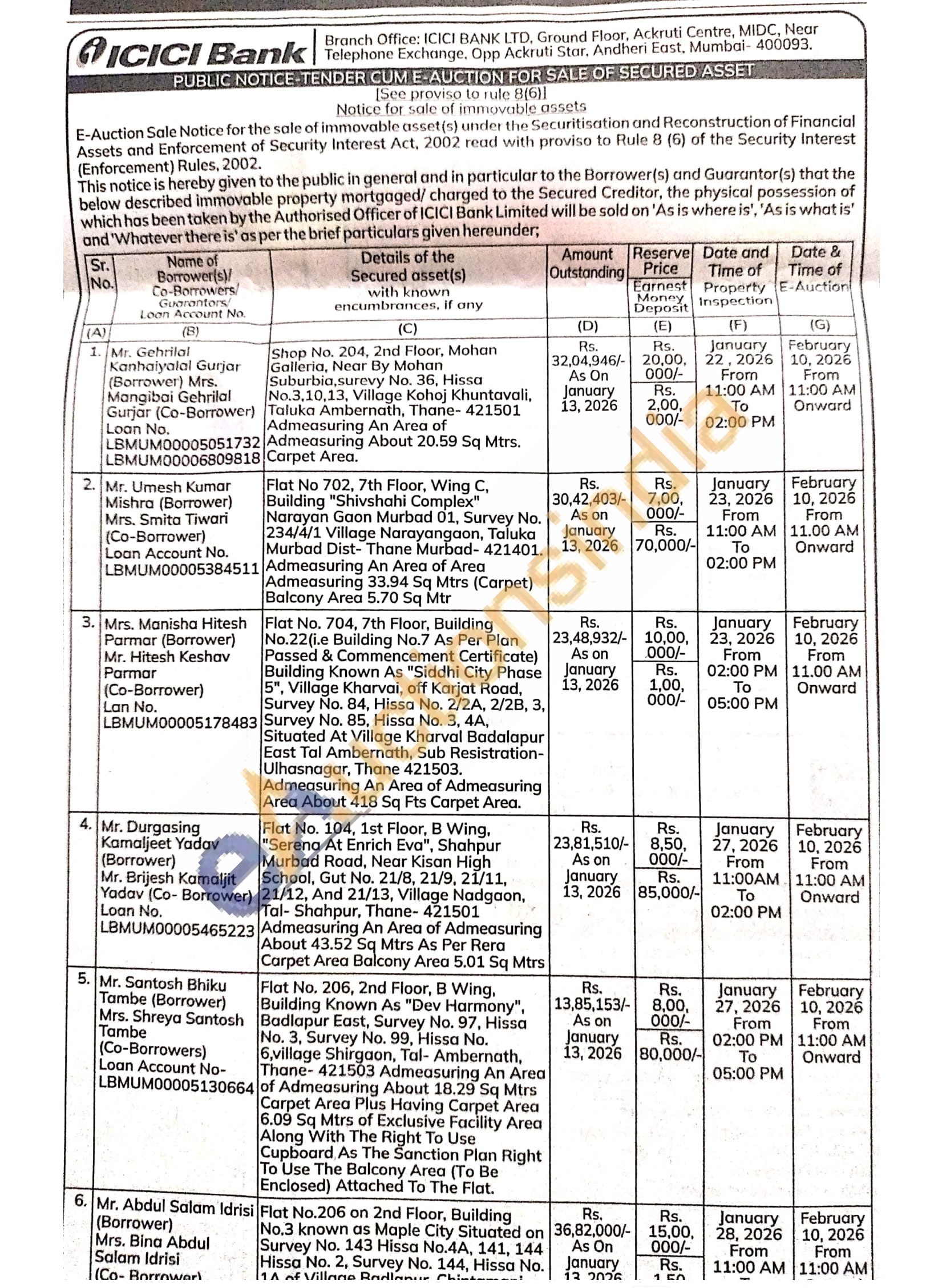 Flat No 207, 2nd Floor, Phase II, G Wing, Building No 2, Satyam Oleander, Sr No. 127,130 & 131, Hissa No 6 & 7, Chikhaloli, Dist Ambernath West, Thane-421501 Admeasuring An Area of Admeasuring About 39.79 Sq Mtr Carpet Area Including Proportionate Price of Common Area And Facility Appurtenant To The Premises Admeasuring About 18.84 Sq Mtr The Nature Extent And Description Of The Common Area And Facility CB/ Balcony And 5.82 Sq Mtr (Natural Terrace) Which Described In Second Schedule
