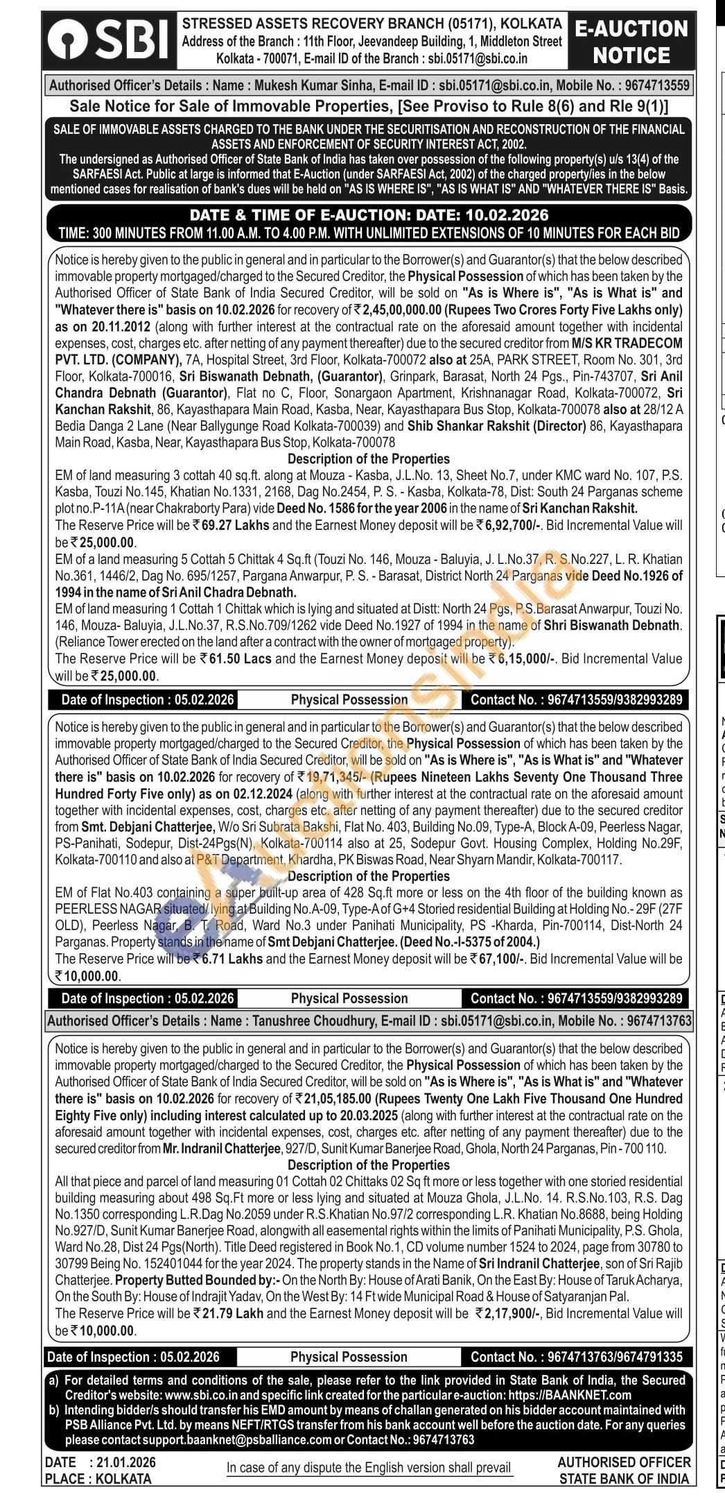 EM of a land measuring 5 Cottah 5 Chittak 4 Sqft (Touzi No. 146, Mouza-Baluya, JL.No.37, R. S.No.227, L. R. Khatian No. 361, 1446/2, Dag No. 695/1257, Pargana Anwarpur, P. S-Barasat, District North 24 Parganas vide Deed No. 1926 of 1994 in the name of Sri Anil Chadra Debnath, EM of land measuring 1 Cottah 1 Chittak which is lying and situated at Distt: North 24 Pgs. PS Barasat Anwarpur, Touzi No. 146, Mouza-Baluyia, J.L.No.37, R.S.No. 709/1262 vide Deed No. 1927 of 1994 in the name of Shri Biswanath Debnath. (Reliance Tower erected on the land after a contract with the owner of mortgaged property).