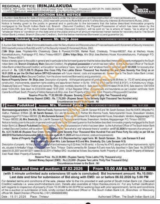 Description of property: All that piece and parcel of land admeasuring 602 Ares (14.88 cenis) in Survey No.474/3, along with all other improvements, rights etc, situated in Amballur Vilage, Mukundapuram Taluk, Thrissur District owned by Mr. Sarasan NS and more fully described in Sale Deed No.2879/2007 dated 04.05.2007 and 481/2011 dated 05.02.2011 of Nellay SRO bounded as follows: Boundanes. North: Property of Johny. South: Property of Mohanen East Road. West Property of Sunanda