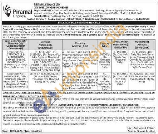 1) All The piece and Parcel of the Property having an extent Flat No 403 Fouth Floor Tower D Tulip Omaxe City Homes Alwar Bypass Road Bhiwadi Alwar Rajasthan-301019