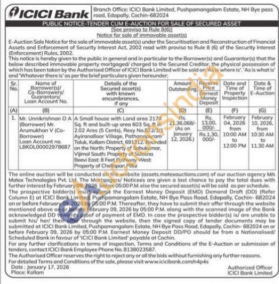 A Small house with Land area 2174 Sq. ft and built-up area 603 Sq. ft in 2.02 Ares (5 Cents), Resy No.822/1/1 Ayiranalloor Village, Pathanapuram Taluk, Kollam District, 691312. Bounded on the North: Property of Sabukumar, Vijimol South: Property of Saleena Beevi East: 8 Feet Pathway West: Property of Chellapan Pillai