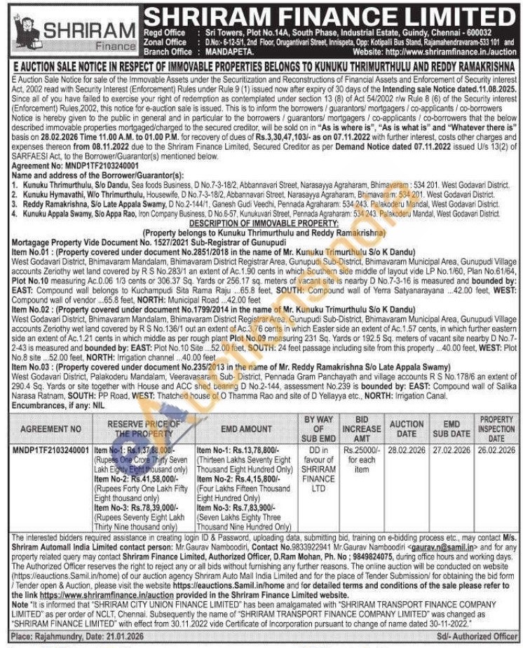 Authorized Officer, D.Ram Mohan Phone No: 9849824075