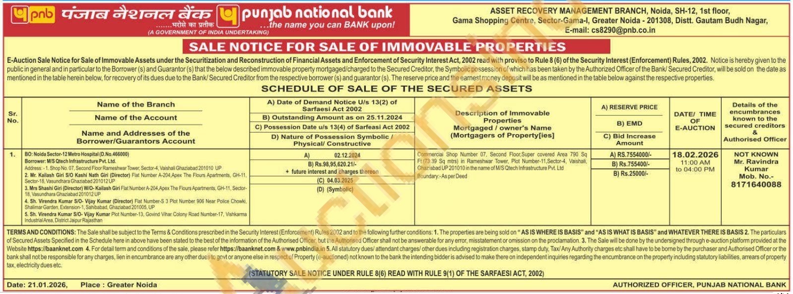 Commercial Shop Number 07. Second Floor, Super covered Area 790 Sq Ft.(73.39 Sq mtrs) in Rameshwar Tower, Plot Number-11, Sector-4, Vaishali, Ghaziabad UP 201010 in the name of M/S Qtech Infrastructure Pvt. Ltd