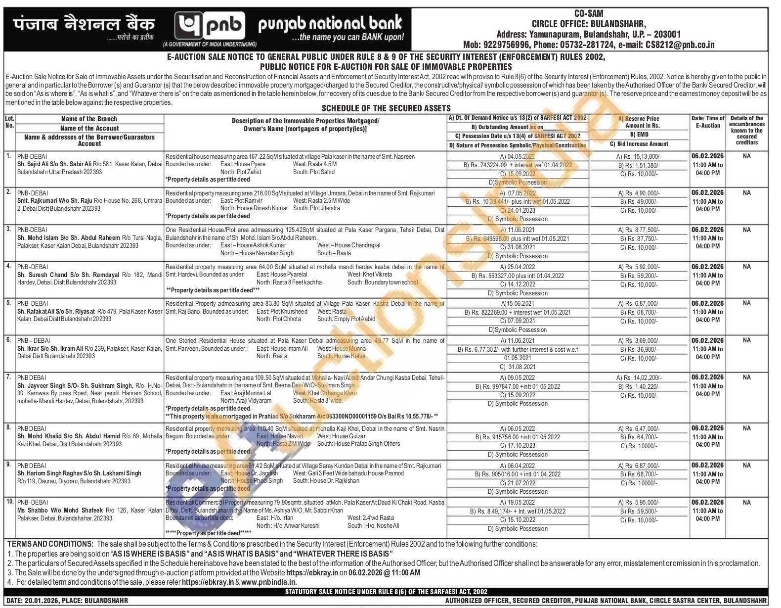 Contact No : Mob: 9229756996, Phone: 05732-281724, e-mail: CS8212@pnb.co.in