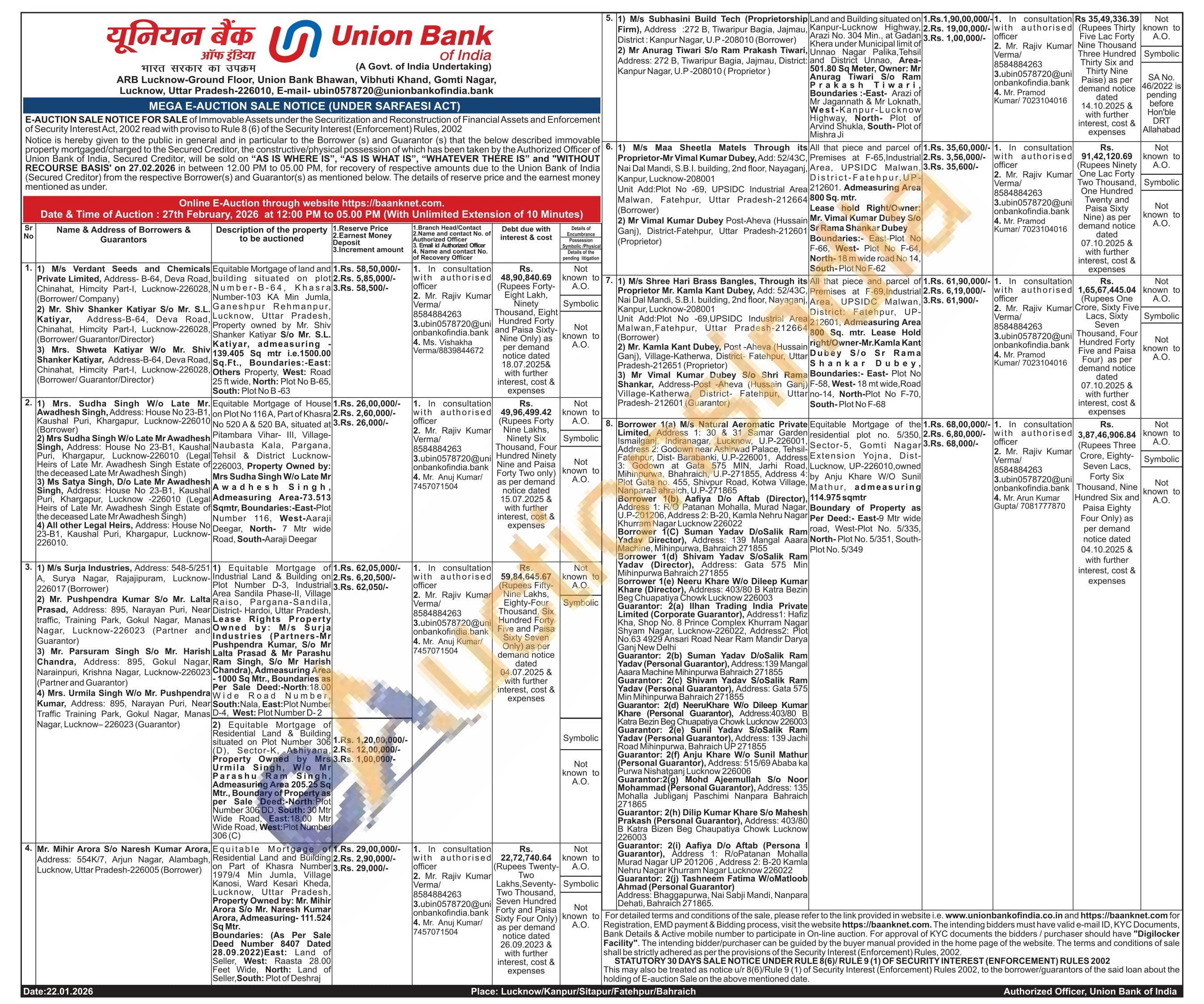 Equitable Mortgage of Residential Land & Building situated on Plot Number 306 (D), Sector-K, Ashiyana, Property Owned by Mrs Urmila Singh, W/o Mr Parashu Ram Singh, Admeasuring Area 205.25 Sq Mtr., Boundary of Property as per Sale Deed:-North:Plot Number 306 DD, South: 30 Mtr Wide Road, East:18.00 Mtr Wide Road, West: Plot Number 306 (C)