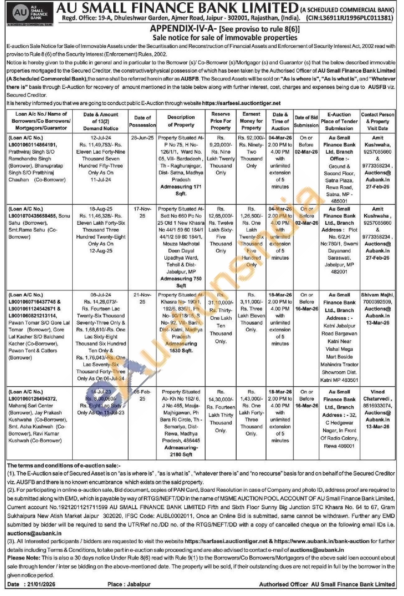 Vinod Chaturvedi, 8516933074, Auctions@ Aubank.In