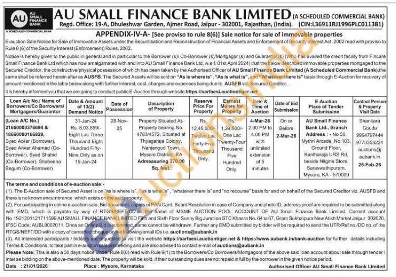 Property Situated Al-Property bearing No 4783/4572, Situated at Thyagaraja Colony, Nanjangud Town, Mysore District. KA Admeasuring 370.00 Sq. feet