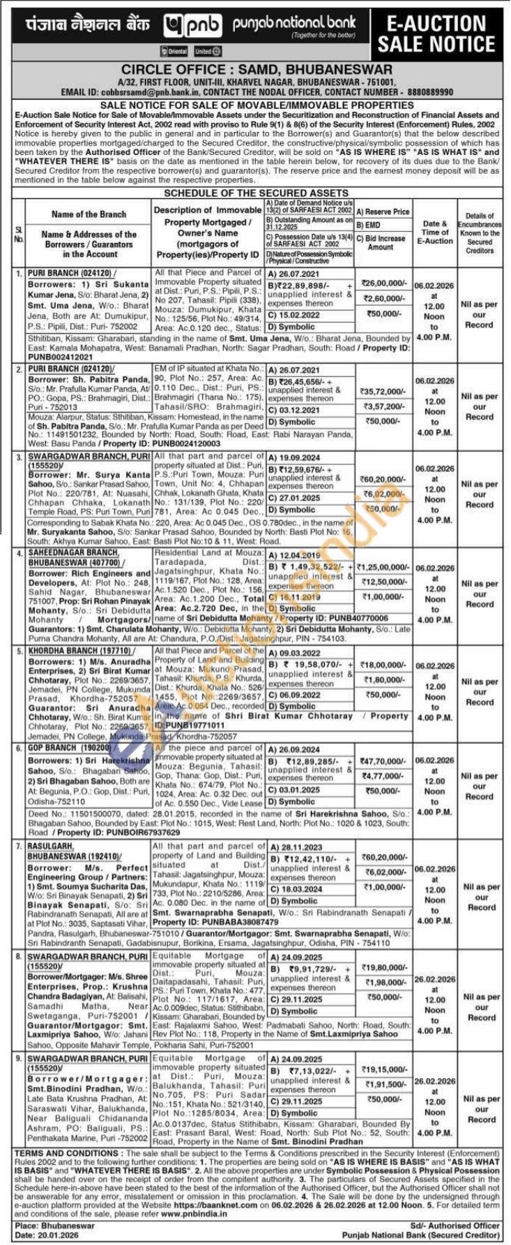 Equitable Mortgage of immovable property situated at Dist.: Puri, Mouza: Balukhanda, Tahasil: Puri No.705, PS: Puri Sadar No.: 151, Khata No.: 521/3140, Plot No.:1285/8034, Area Ac.0.0137dec, Status Stithibabn, Kissam: Gharabari, Bounded By East: Prasant Baral, West: Road, North: Sub Plot No.: 52, South: Road, Property in the Name of Smt. Binodini Pradhan