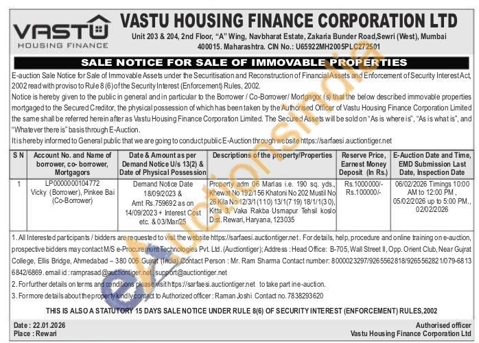 Property adm 06 Marlas i.e. 190 sq. yds., Khewat No 192/1 56 Khatoni No 202 Mustil No 26 Kila No 12/3/1 (110) 13/1(719) 18/1/1(30), Kitta 3, Vaka Rakba Usmapur Tehsil koslo Dist. Rewari, Haryana, 123035