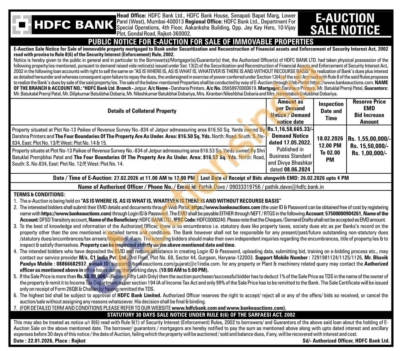 Pathik Dave : 09033319756/pathik.dave@hdfc.bank.in & Mr. Bhavik Pandya : 08866682937.