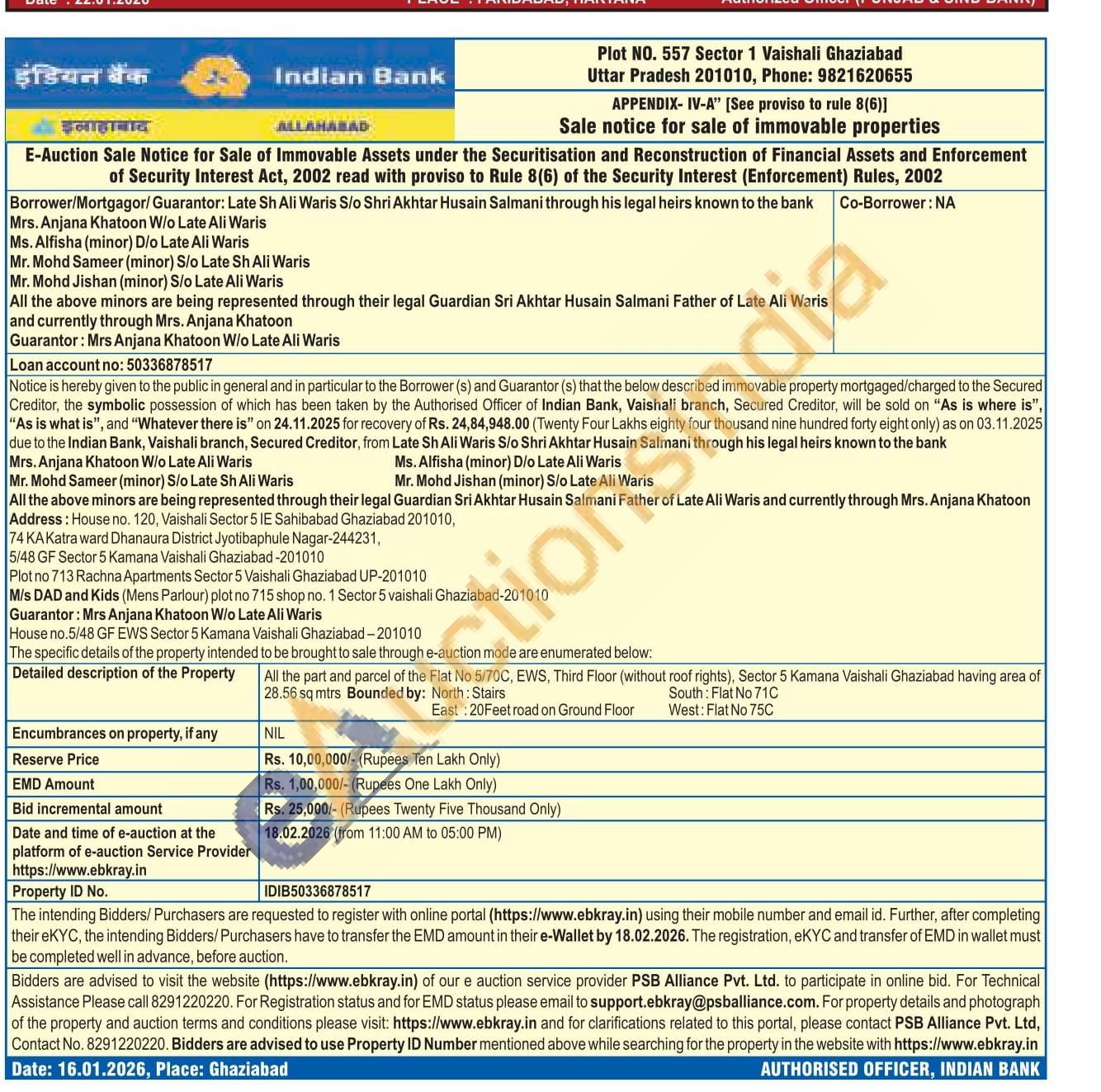 All the part and parcel of the Flat No 5/70C, EWS, Third Floor (without roof rights), Sector 5 Kamana Vaishali Ghaziabad having area of 28.56 sq mtrs