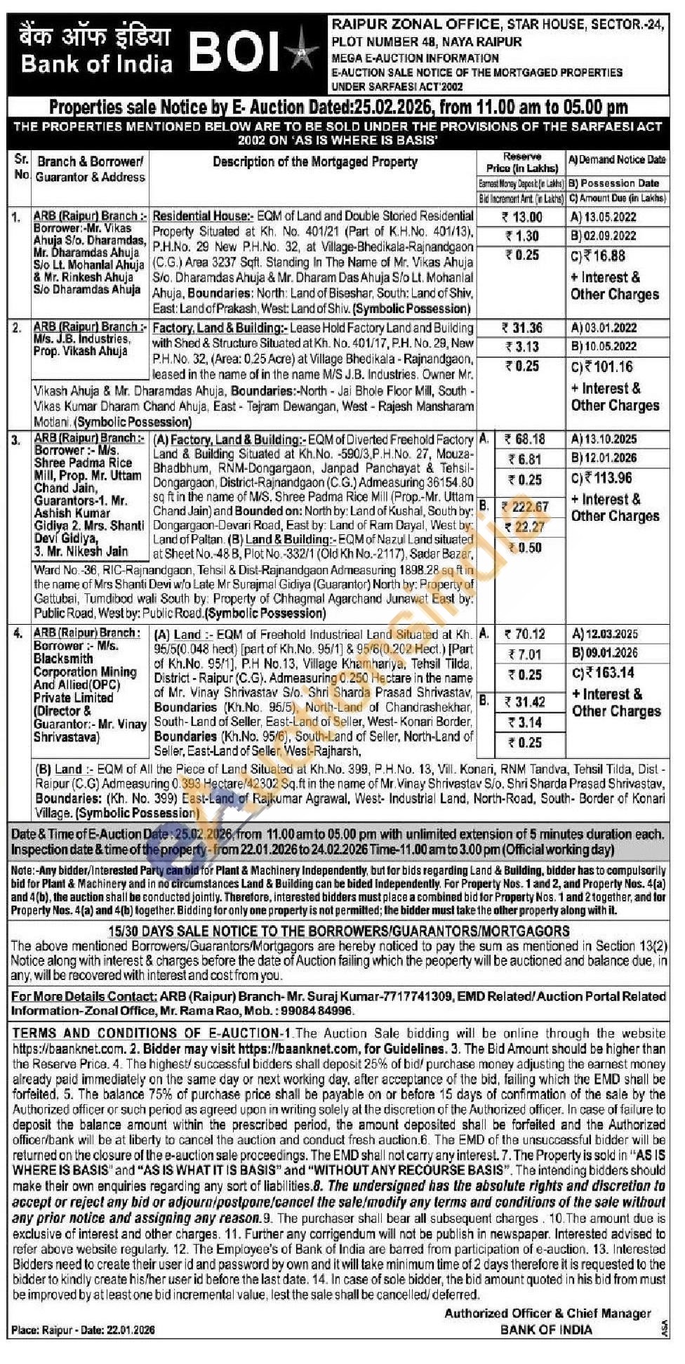 Factory, Land & Building:-EQM of Diverted Freehold Factory A. 68.18 Land & Building Situated at Kh.No. -590/3,P.H.No. 27, Mouza- Bhadbhum, RNM-Dongargaon, Janpad Panchayat & Tehsil- Dongargaon, District-Rajnandgaon (C.G.) Admeasuring 36154.80 sq ft in the name of M/S. Shree Padma Rice Mill (Prop.-Mr. Uttam Chand Jain) and Bounded on: North by: Land of Kushal, South by: Dongargaon-Devari Road, East by: Land of Ram Dayal, West by: Land of Paltan