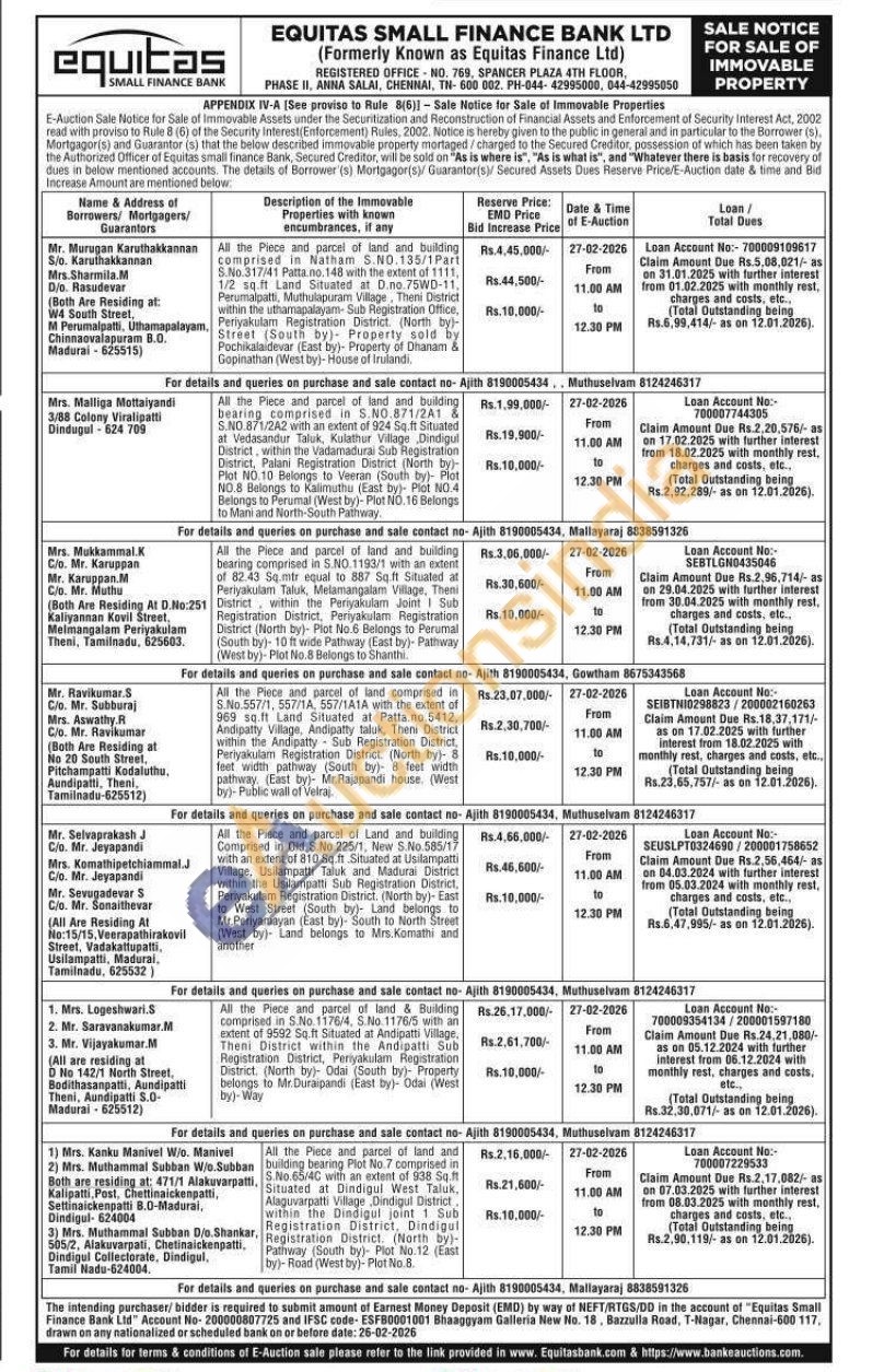 7) All the Piece and parcel of land and building bearing Plot No.7 comprised in S.No.65/4C with an extent of 938 Sq.ft Situated at Dindigul West Taluk, Alaguvarpatti Village Dindigul District within the Dindigul joint 1 Sub Registration District, Dindigul Registration District. (North by)-Pathway (South by) Plot No.12 (East) by)-Road (West by)-Plot No.8