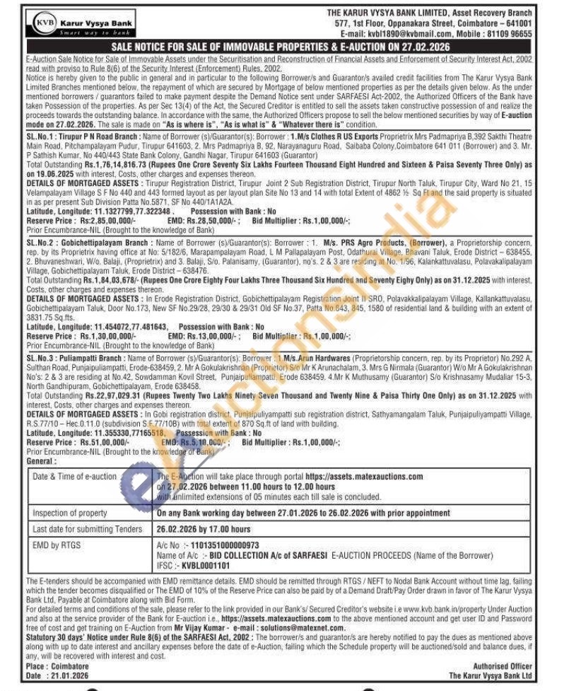 3) : In Gobi registration district, Punjaipuliyampatti sub registration district, Sathyamangalam Taluk, Punjaipuliyampatti Village, R.S.77/10-Hec.0.11.0 (subdivision S.F.77/10B) with total extent of 870 Sq.ft of land with building