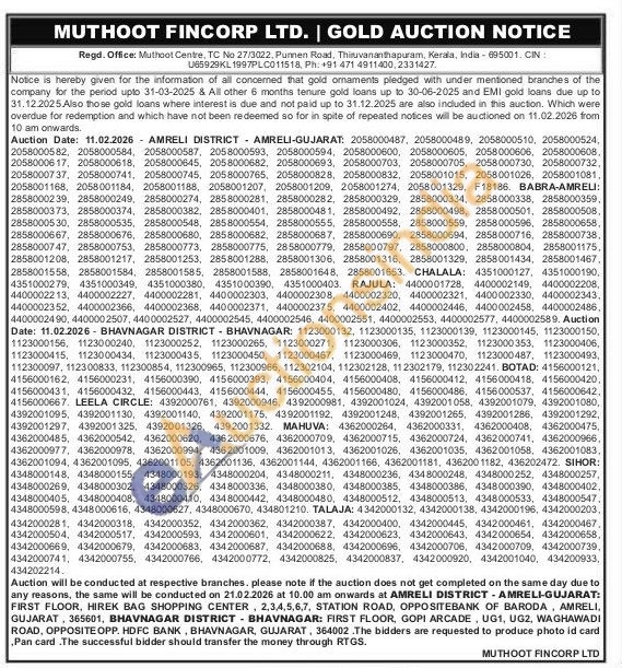 Muthoot Fincorp Ltd Gold Auctions Auction in Amreli