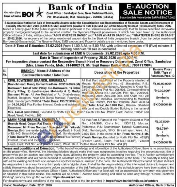 All that Part & Parcel of the Property situated at Plot No.: 464/998, Khata No.: 133/122, Mouza: Padampur, P.S: Biramitrapur, Tahasil: Kuarmunda, Dist.: Sundargarh, SRO: Biramitrapur, Area: Ac. 0.030 Dec. in the name of Mr. Prem Noniya & Mr. Vikash Noniya, Bounded by North: Plot No.: 465(P) (Vacant Land), South: Plot No.: 464(P), (Vacant Plotted Road Over Plot No.: 464 (P)