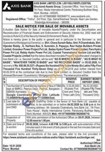 Two Number of Tunnel Boring machine (2 Nos of TBM) kept at BMRCL Peenya Depo, Peenya, Bangalore 560058, KarnatakaGoogle Coordinates of the Site: Latitude: 13.040859 North, Longitude: 77.535964 East.