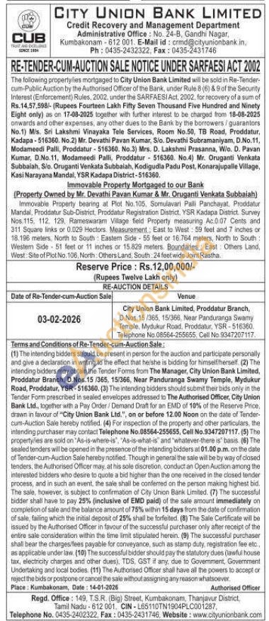 Immovable Property bearing at Plot No.105, Somulavari Palli Panchayat, Proddatur Mandal, Proddatur Sub-District, Proddatur Registration District, YSR Kadapa District. Survey Nos 115, 112 129, Rameswaram Village field Property measuring Ac.0.07 Cents and 311 Square links or 0.029 Hectors. Measurement: East to West: 59 feel and 7 inches or 18.196 meters North to South Eastem Side 55 feet or 16.764 meters, North to South: Westem Side 51 feet or 11 inches or 15.829 metens. Boundaries, East Others Land, West: Site of Plot No. 106, North: Others Land South 24 feet wide Joint Rastha.