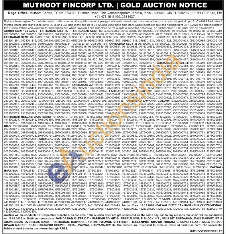 Muthoot Fincorp Ltd Gold Auctions Auction in Faridabad