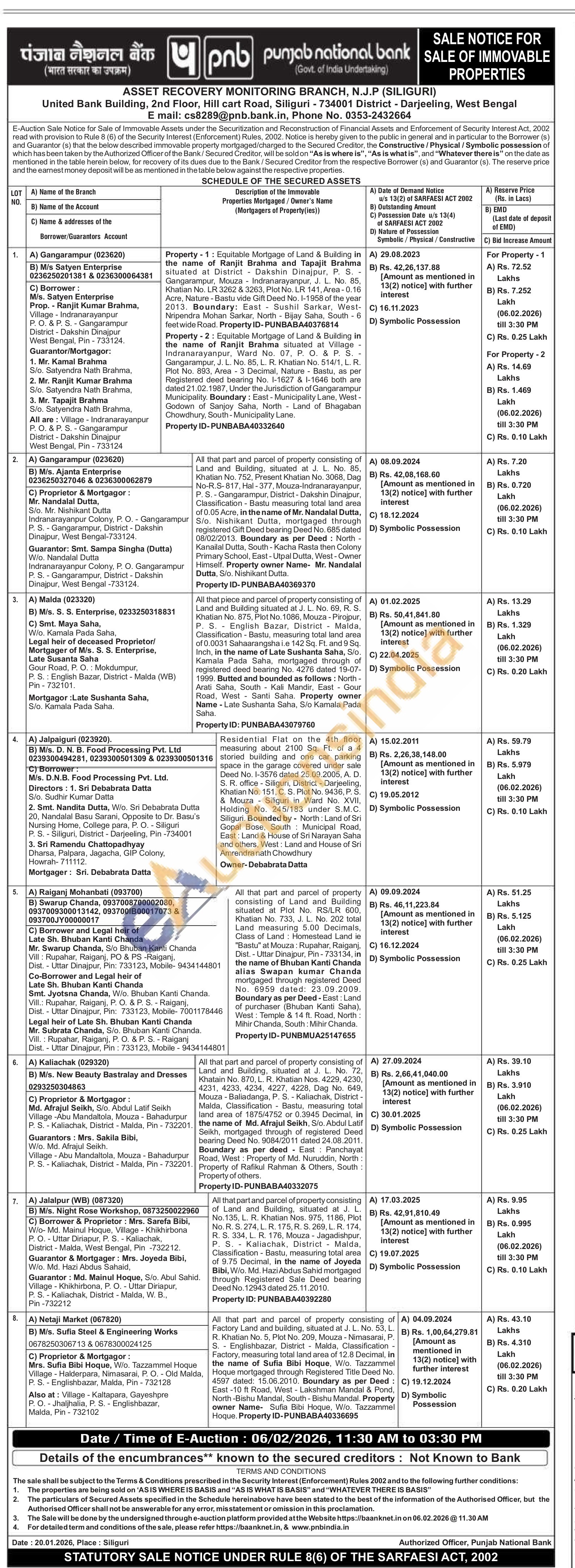 All that part and parcel of property consisting of Land and Building, situated at J. L. No.135, L. R. Khatian Nos. 975, 1186, Plot No. R. S. 274, L. R. 175, R. S. 269, L. R. 174, R. S. 334, L. R. 176, Mouza Jagadishpur, P. S. Kaliachak, District Malda, Classification - Bastu, measuring total area of 9.75 Decimal, in the name of Joyeda Bibi, W/o. Md. Hazi Abdus Sahid mortgaged through Registered Sale Deed bearing Deed No. 12943 dated 25.11.2010