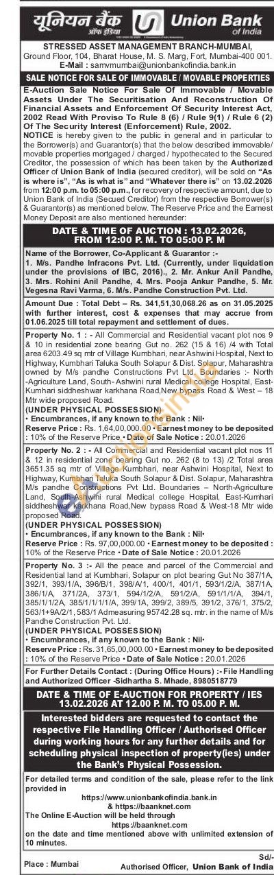 All Commercial and Residential vacant plot nos 9 & 10 in residential zone bearing Gut no. 262 (15 & 16) /4 with Total area 6203.49 sq mtr of Village Kumbhari, near Ashwini Hospital, Next to Highway, Kumbhari Taluka South Solapur & Dist. Solapur, Maharashtra owned by M/s pandhe Constructions Pvt Ltd. Boundaries: North -Agriculture Land, South-Ashwini rural Medical college Hospital, East-Kumhari siddheshwar karkhana Road, New bypass Road & West-18 Mtr wide proposed Road.