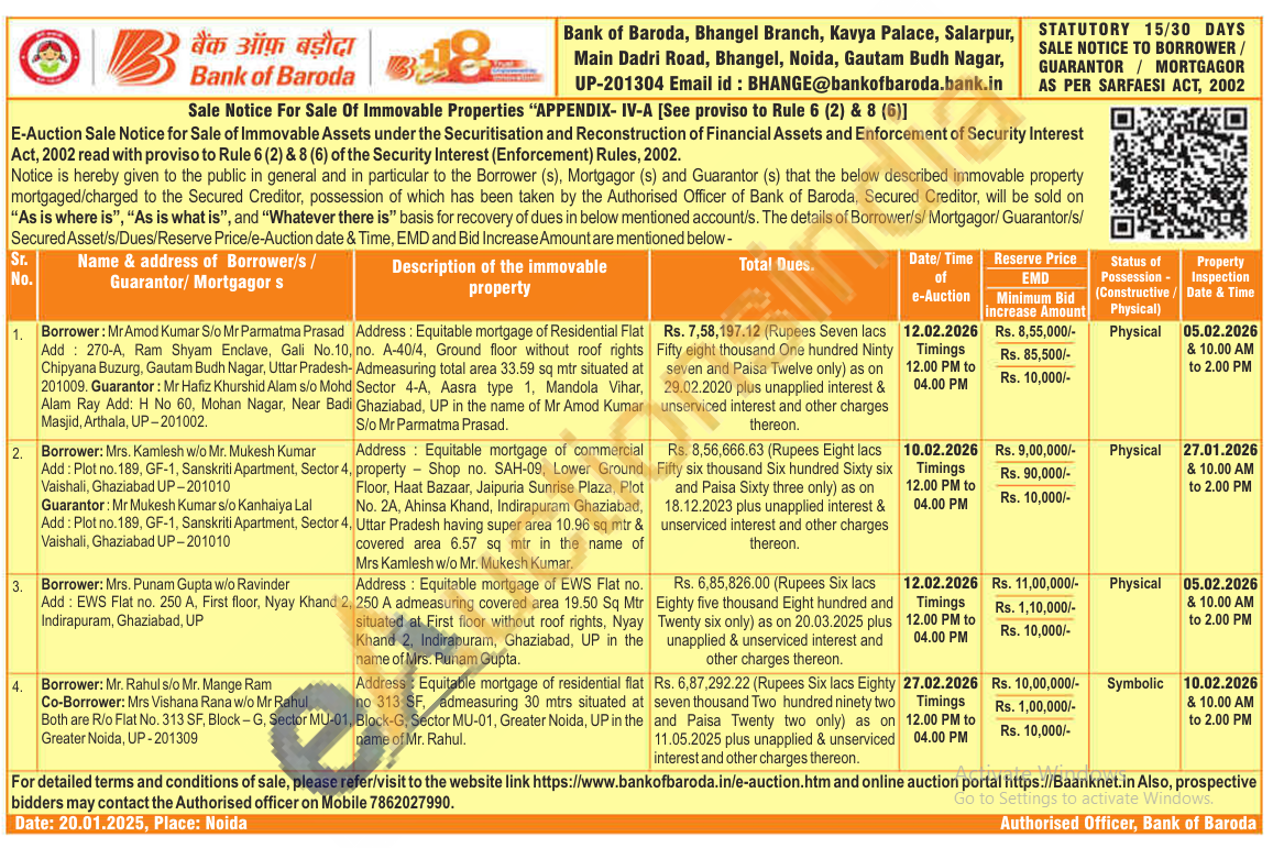 Address: Equitable mortgage of residential flat no 313 SF, admeasuring 30 mtrs situated at Block-G, Sector MU-01, Greater Noida, UP in the name of Mr. Rahul