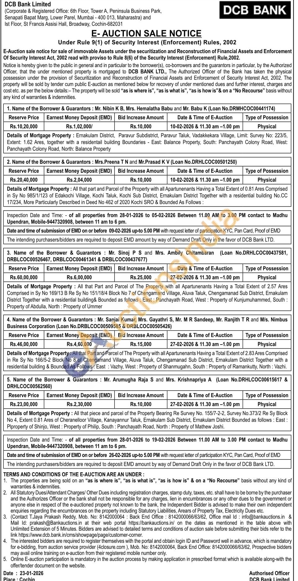 Details of Mortgage Property: All that Part and Parcel of The Property with all Apartunenants Having a Total Extent of 2.83 Ares Comprised in Re Sy No 166/5-2 Block No 8 of Chengamand Vilage, Aluva Taluk, Chengamanad Sub District, Emakulam District Together with a residential building & Bounded As Follows: East Vazhy, West: Property of Shanmugahn, South Property of Ramankutty, North: Vazhi.